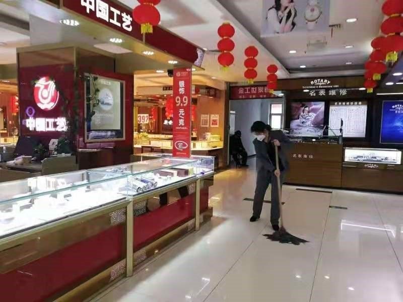 (“中國工藝”品牌王府井店員工進行定時消毒)